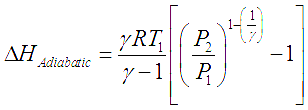 为气体恒压比热与恒容比热之比(Cp/Cv)。对于这样一个绝热过程,压缩机开发的头和消耗的功率由以下两个方程给出。