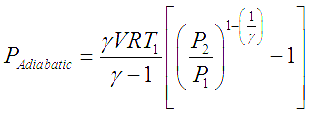 绝热压缩:对于没有任何冷却的气体压缩机,气体温度随压力的升高而升高。温升由下列公式给出: