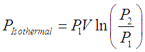等温压缩:当压缩机内被压缩的气体用夹套流冷却时,该过程是一个等温过程。在这种情况下所做的功和因此需要的功率运行这种类型的冷却压缩机是理论上可能的最小限度。这是压缩气体从P1P2由下式给出,