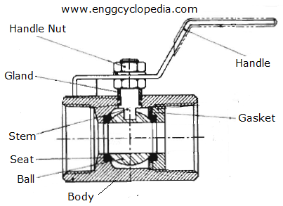 球阀的横截面,显示-阀杆,球,阀座等-阀门装饰件