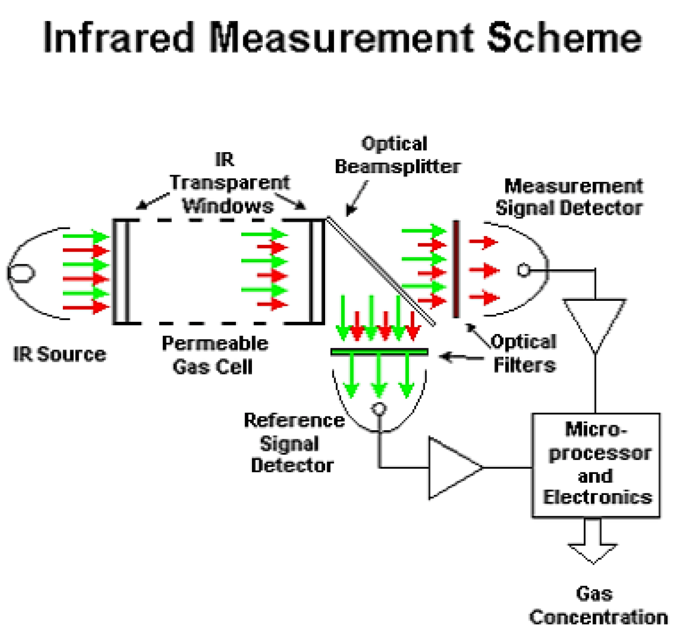 它们的工作模式可以简单描述如下:红外源照亮进入测量室内的气体体积。当光线通过时,气体吸收了一些红外波长,而另一些则完全不衰减地通过。