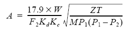 下一步是采用API 520第I部分中给出的安全阀通径程序,用于亚临界流量型气体安全阀。用了下面的方程,