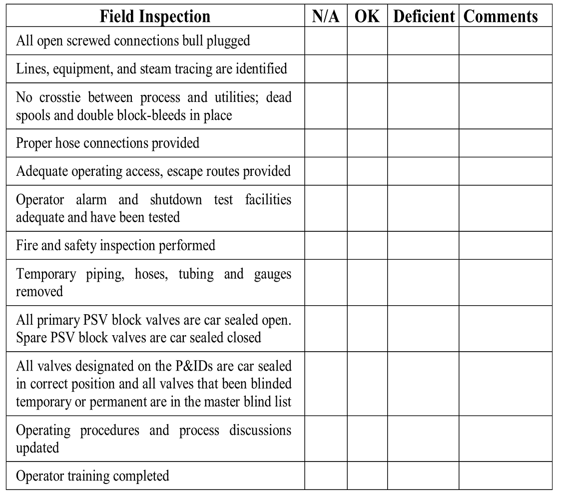 启动前安全审查不仅包括设备,还包括程序和培训。