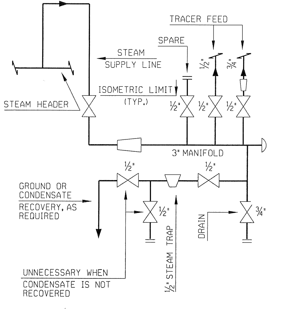 - 跟踪管路:输送需要蒸汽跟踪的工艺流体的工艺管道。