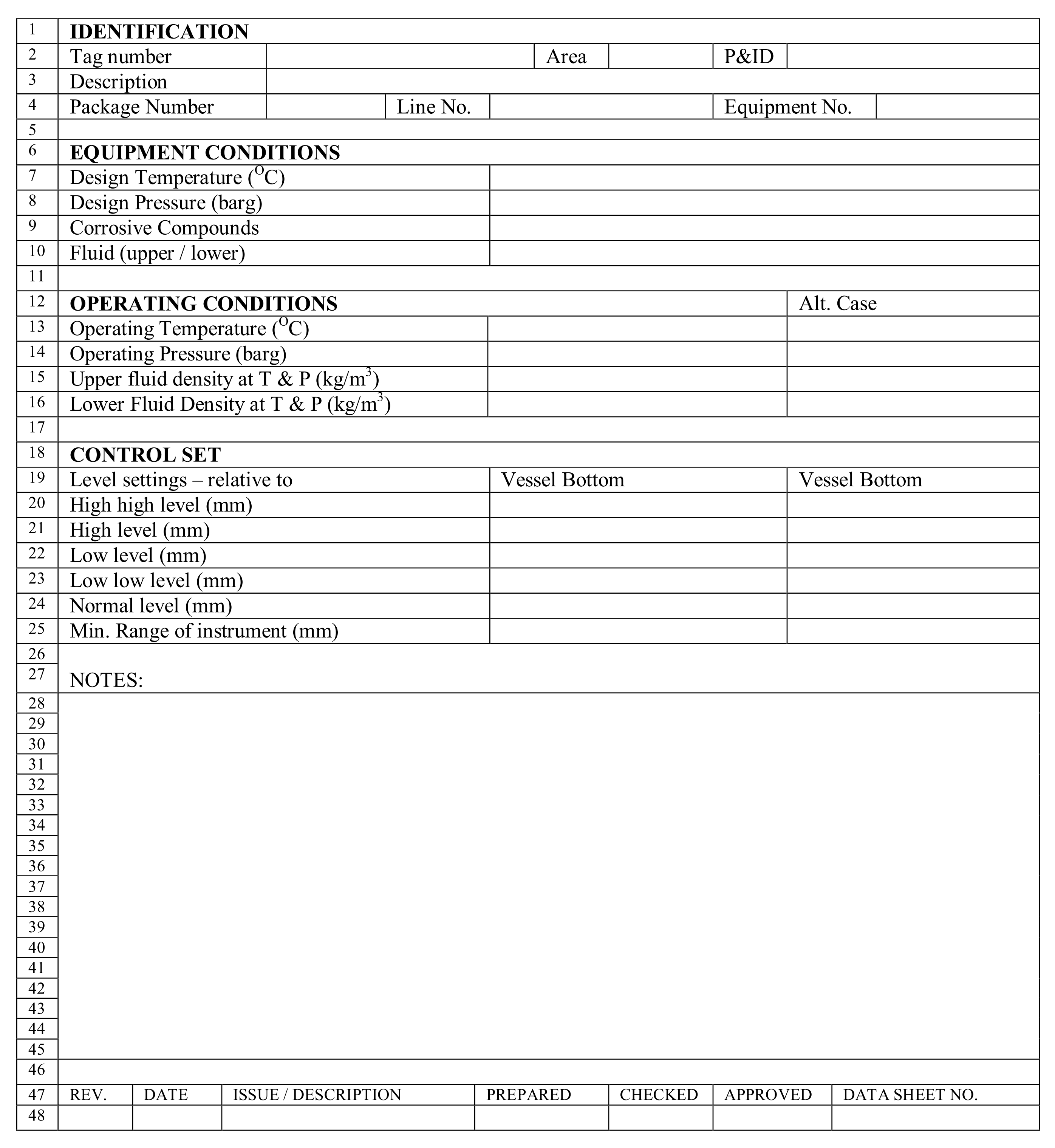 P&ID编号和管线/设备:这是测量水平面的容器或容器的标签编号。