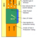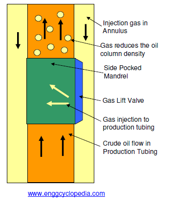 Gas Lift for Oil Wells- 燃气升降机是一种人工提升方法,可增强从水库中的原油回收率。注入油柱中的气体可降低油的有效密度生产管,从而降低了井中油柱的静水压力。储层上方油柱的压力降低使储层流体以更高的流速进入油井孔。气体提升可以是连续的或间歇性的,具体取决于相关井的生产率。