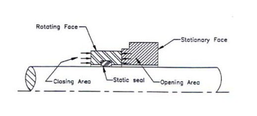 机械密封的工作原理是使用两个非常平的搭接面,这使得泄漏很难发生。一个面不与轴一起旋转(静止),而第二个面与轴一起旋转(旋转)。