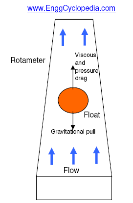 Rotameter / Variable area meterconsists of a vertical tapered glass tube and a float inside the tube.