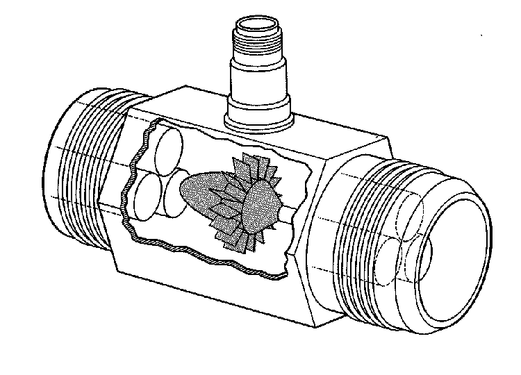 Pelton wheel flow meter or Radial turbine flow meteruses a radial turbine to convert the fluid flow into speed of rotation for the turbine wheel which is calibrated to measure fluid velocity and fluid flow.