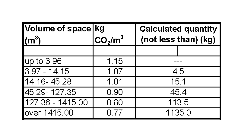 我们注意到,空间越小,所需的二氧化碳量就越大。对于要求设计浓度大于34%的材料,必须将迄今为止计算的数量与图5.3.4中给出的体积因子相乘NFPA12