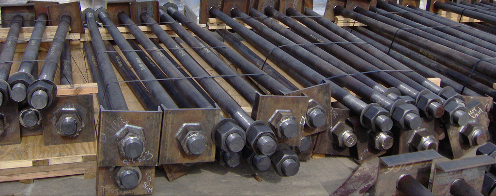 然后使用调平螺钉以及激光精密对准工具或精密对准指示器。使用这些工具,基板安装垫可以在非常精确的精度范围内,从一侧到另一侧、从一端到另一端以及从对角线方向,平齐地安装。然后,与锚栓接合的螺母被固定,底板内的空隙以及底板和基础之间的空间用环氧灌浆填充。