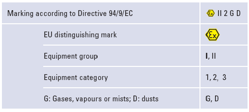 Based on what we have discussed above, the typical marking in accordance with the ATEX Directive (94/9/EC) is shown below