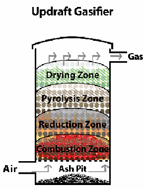 下图表示典型的不同区域气化炉.气化炉显示在这里是向上的通风类型。