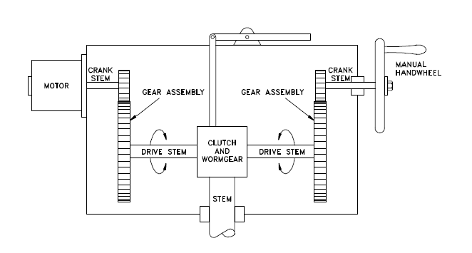 电动马达允许手动操作(通过手轮)、半自动操作(当马达由控制系统启动时)和阀门的自动操作。通过齿轮系统将马达连接到阀杆上,从而实现自动化操作。采用齿轮传动系统可以降低电机转速,从而增加阀杆处的扭矩。手动手轮也参与齿轮系。