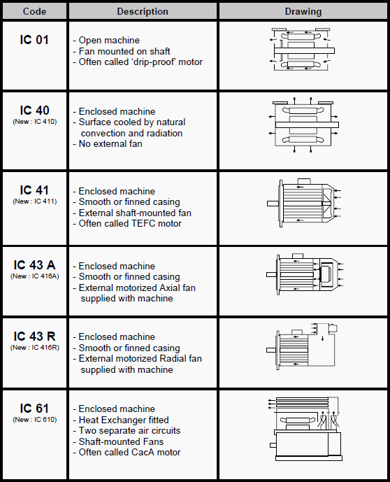 冷却方法按照IEC 60034-6可以看出鼠笼式感应电动机是如何冷却的。冷却方法用字母IC (集成电路代表国际冷却)后接一串数字,代表冷却方式(例如自行通风、强制冷却等)及冷却方式(例如表面冷却、液体冷却等)。请参考图2,突出鼠笼感应电机最常用的冷却方法。