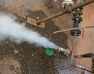图3显示了从蒸汽管道上的阀门排放非常明显,液体随着蒸汽蒸汽排出。蒸汽质量是不可接受的过程。