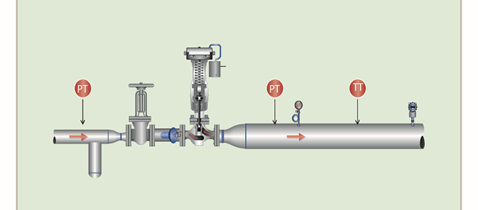 蒸汽减压阀的工作原理与节流量热计相同。一个典型的蒸汽减压站的安装,通过在上游和下游添加压力测量和下游添加温度测量,提供了连续在线的“量热计”。